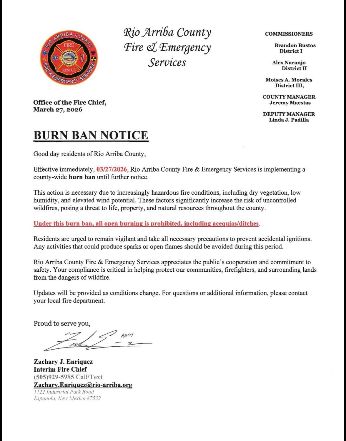 Burn Ban in Effect •