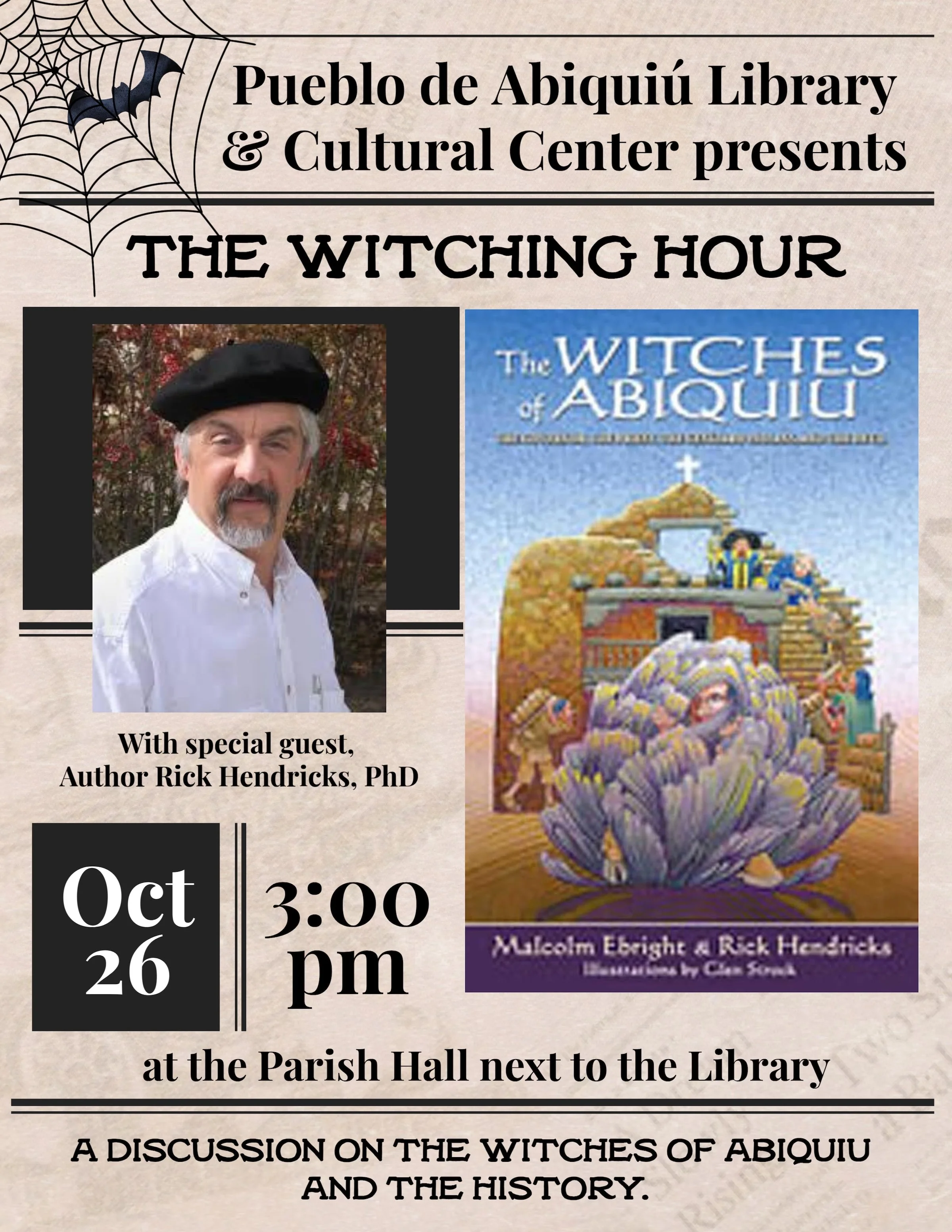 Join us for the afternoon to learn more about the intriguing and thrilling tale of witches, sorcery, spells, exorcism, curses, and battles with the Devil during the establishment of the Abiquiu Genizaro land grant between 1756 and 1766 with author and very special guest, Dr. Rick Hendricks.